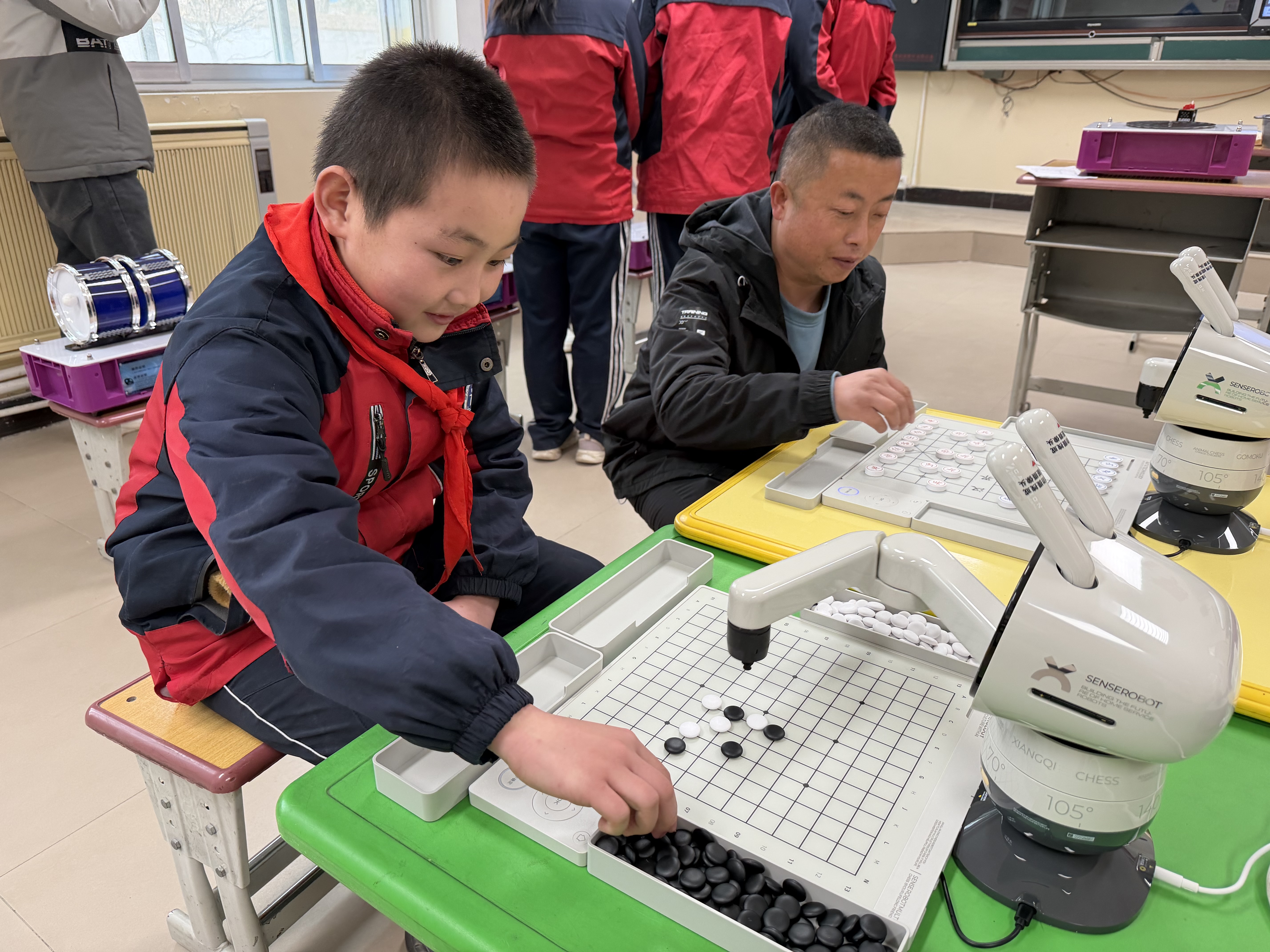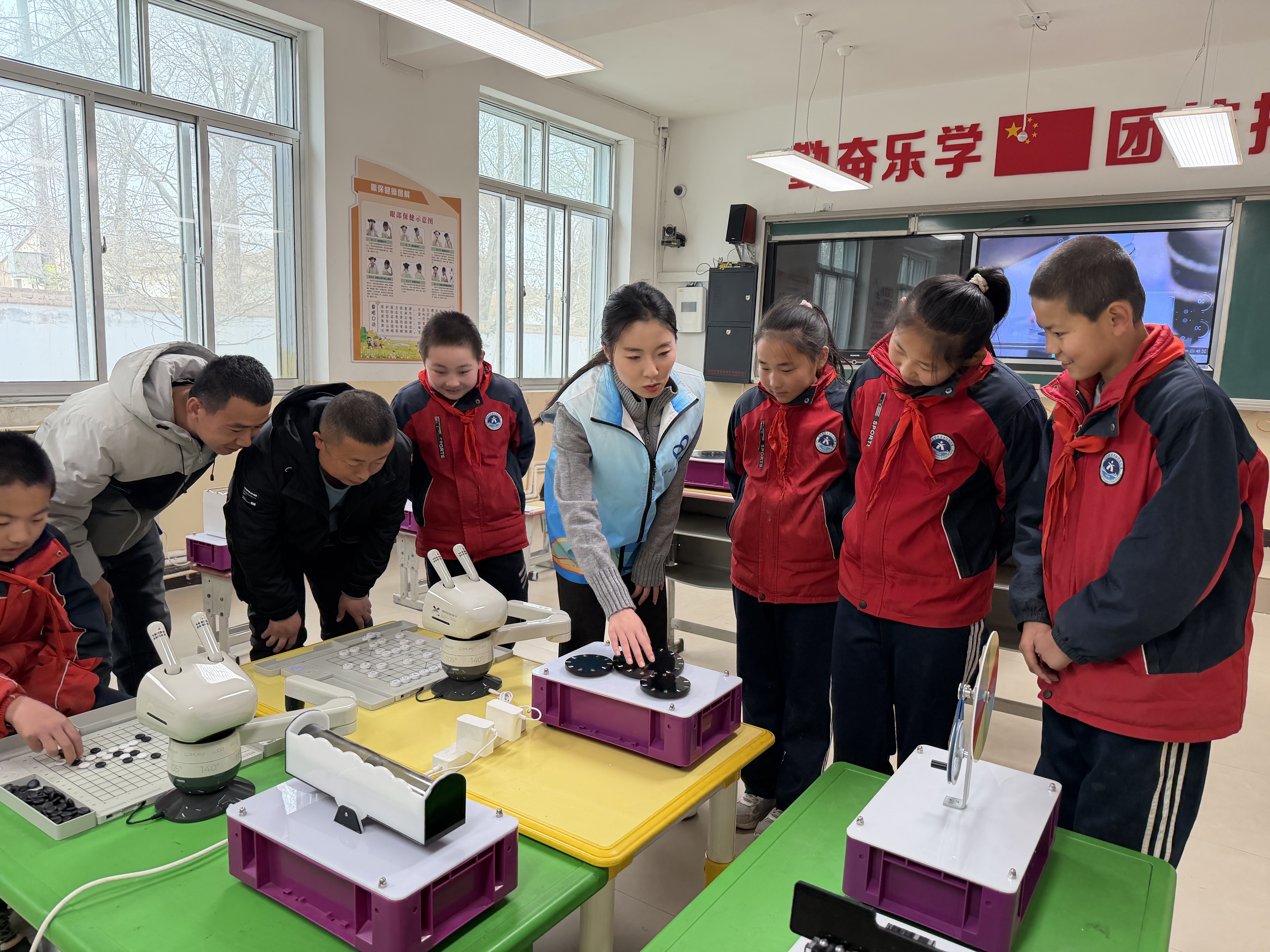 互动探新知,从展品到AI,玩转科学乐趣。流动展品与AI下棋机器人共同构成了孩子们的“科学探索区”。声学、力学类展品前,孩子们或观察或动手,在亲身体验中感受基础科学的魅力;在AI下棋机器人旁,大家有序围坐,轮流尝试对弈,在思考与落子间感受人工智能的趣味,每位同学都能在互动中收获知识与快乐。