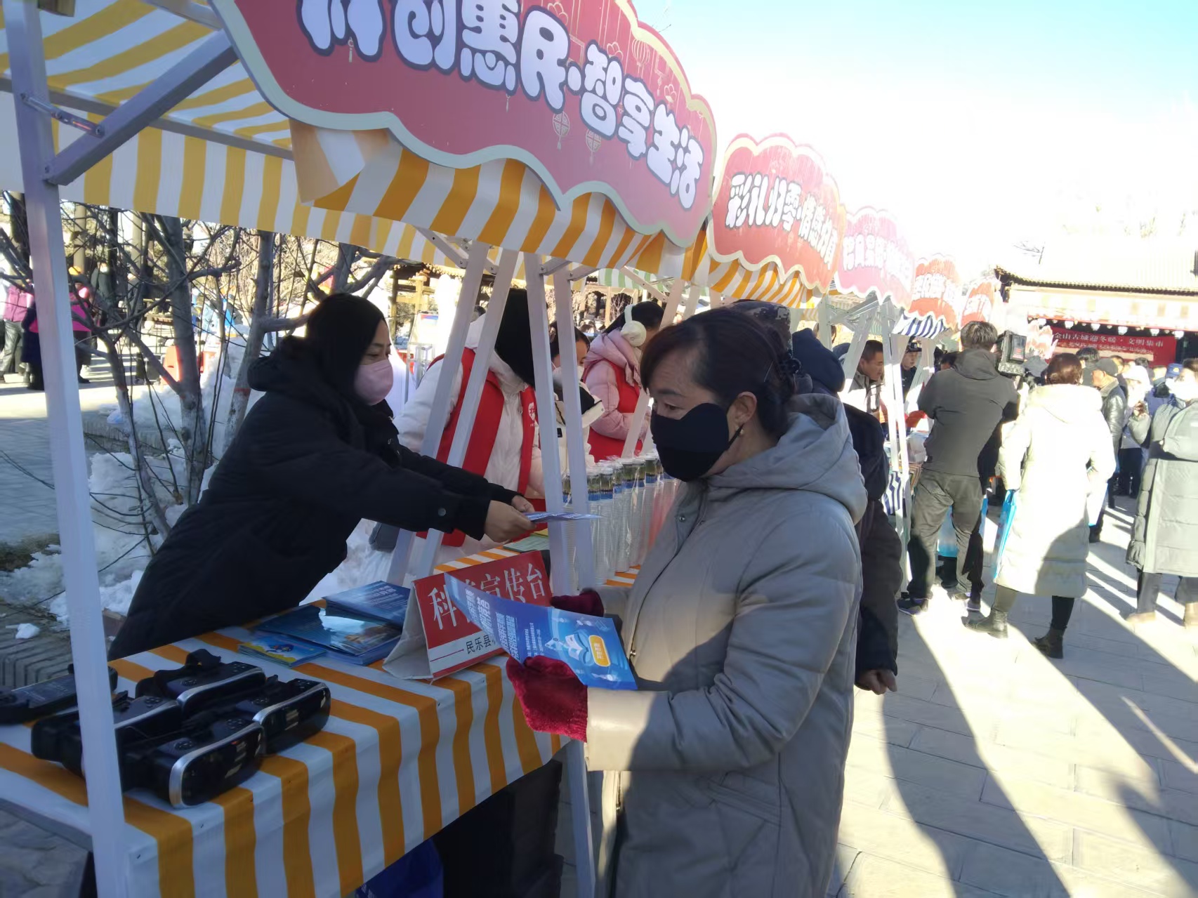 12月3日,“金山古城迎冬暖·文明集市”新时代文明实践省级集中活动在民乐县启幕,县科协以“科技科普+文明实践”为抓手,携机器人、机器狗、VR眼镜等前沿设备亮相,搭配宣传彩页发放,为群众送上趣味科普盛宴。