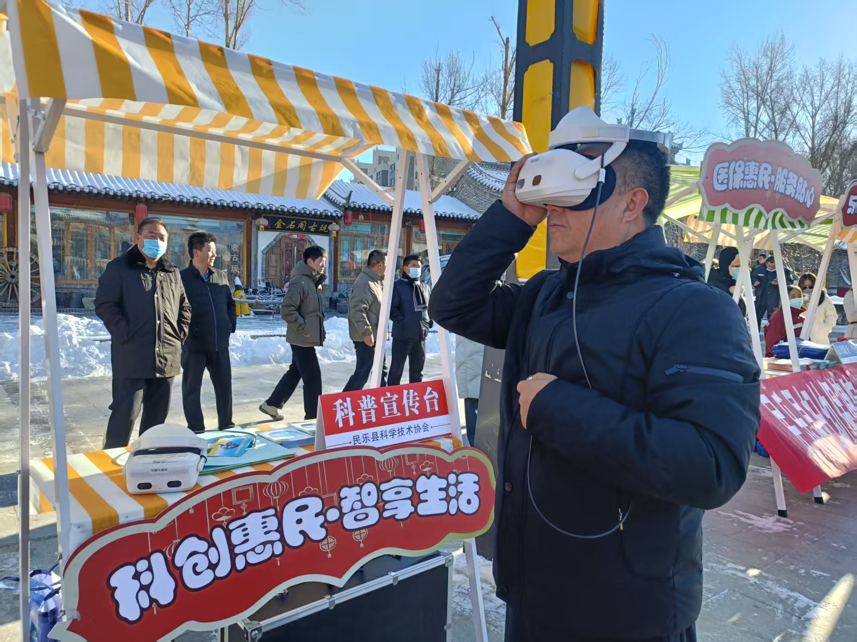 12月20日,冬日的民乐古城暖意融融,民乐县2026年文化科技卫生“三下乡”集中示范活动暨“情暖冬至·文明集市”新时代文明实践活动在此正式启动。作为打通服务群众“最后一公里”的重要载体,县科协携VR眼镜、大疆无人机等科技装备惊艳亮相,以沉浸式科普体验为群众送上“科技暖冬礼”,让科学魅力在烟火气中浸润人心。