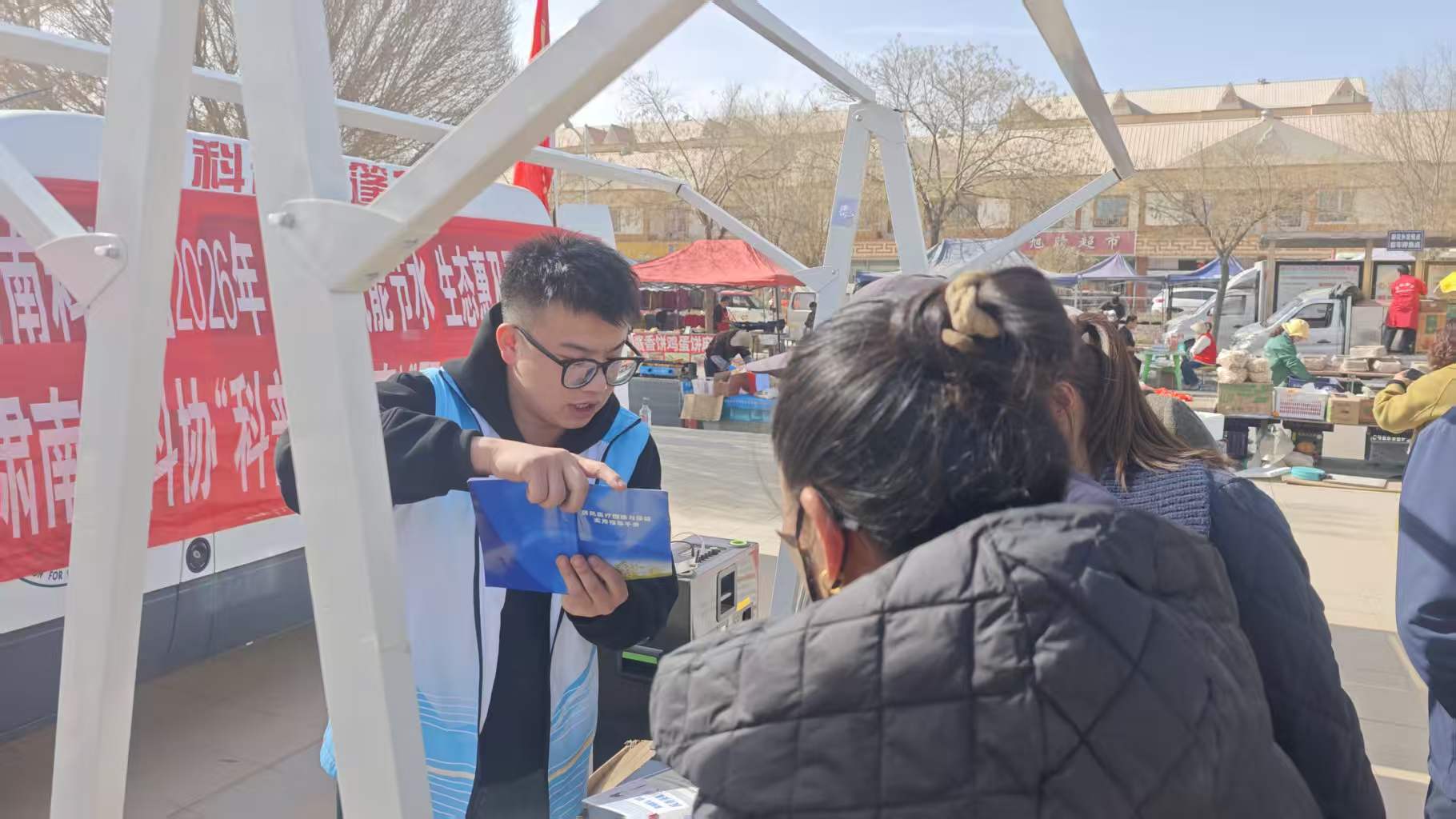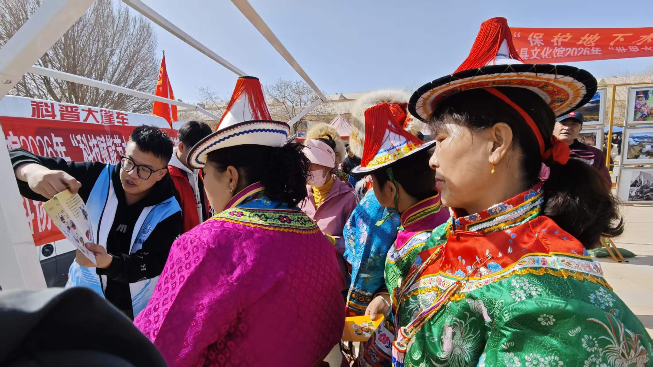 3月23日,2026年“世界水日”“中国水周”宣传活动启动仪式在明花乡雅士乐中心广场成功举行。肃南科技馆组织科普志愿者现场开展节水科普宣传与科技互动体验活动。