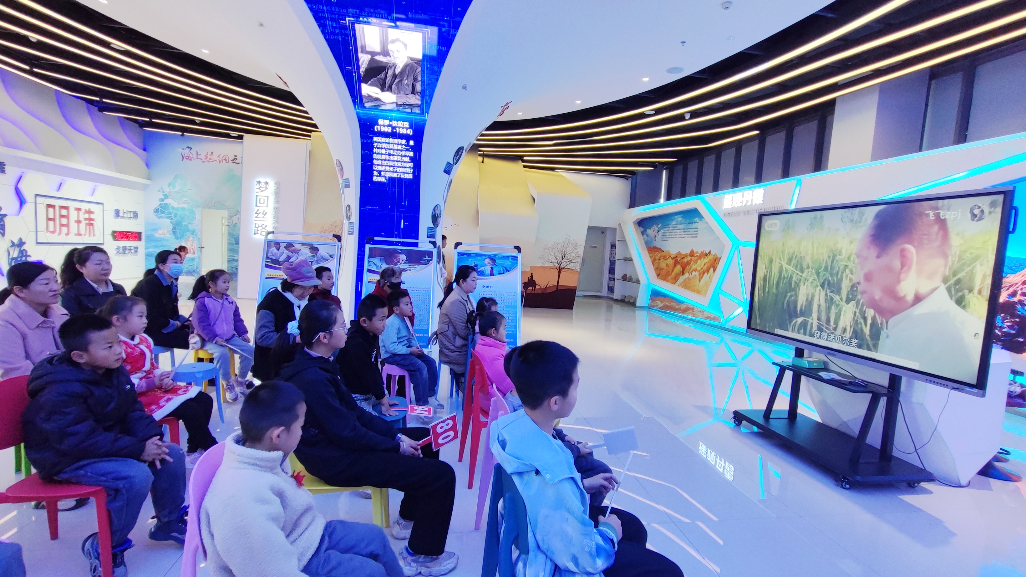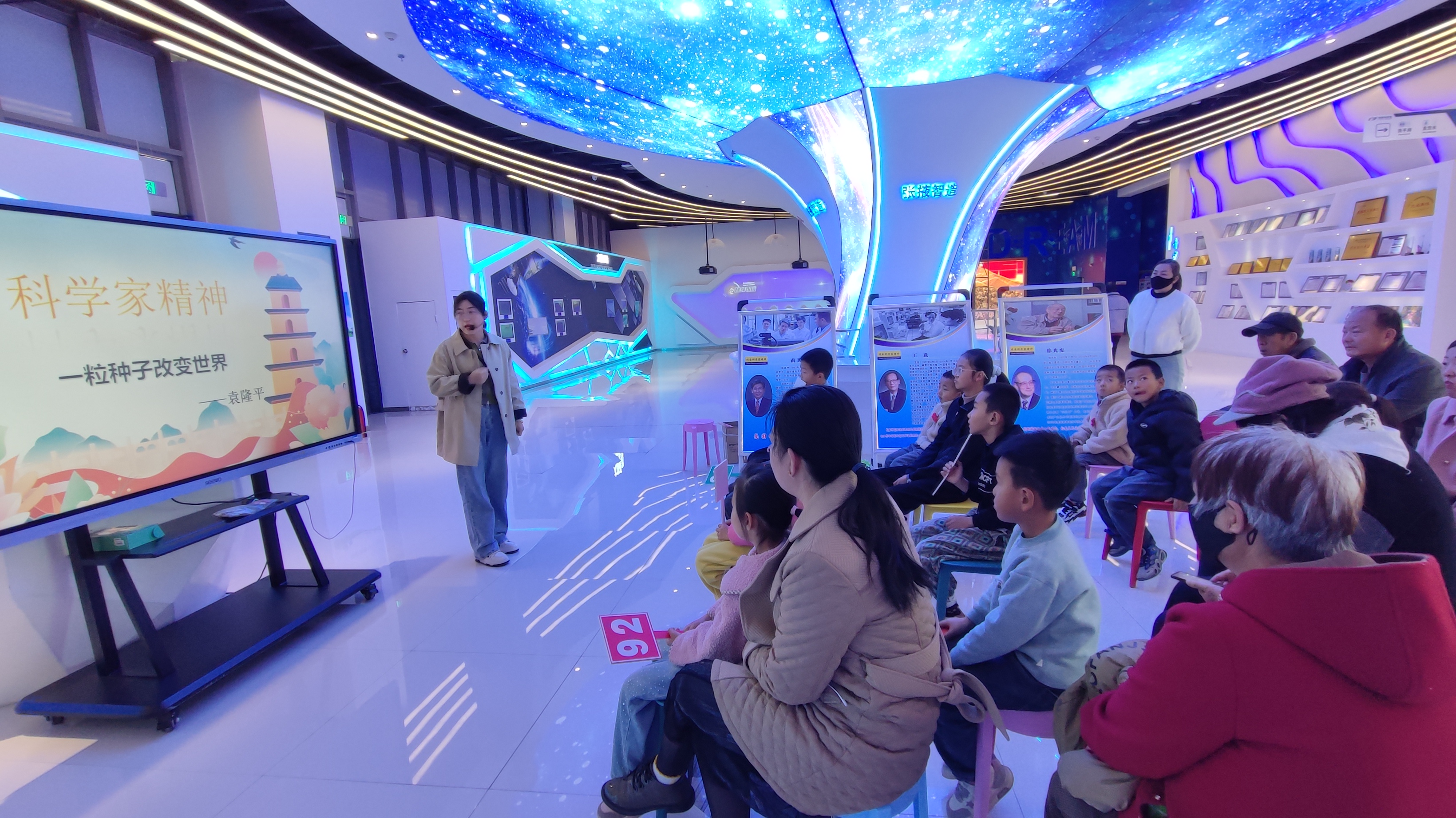 随后,结合展板内容与视频资料,科普辅导员以“杂交水稻之父”袁隆平院士为具体范例,生动讲述了他长期扎根田间,一生致力于杂交水稻研究的不凡历程,阐释了他在保障国家粮食安全方面作出的重大贡献,并深情回顾了他“把论文写在大地上”的求实精神与“禾下乘凉梦”的美好理想,让孩子们真切感受到科学家深厚的爱国情怀与无私的奉献精神。活动还围绕袁隆平院士的科研故事与精神内涵,特别设置了有奖问答环节,孩子们踊跃参与,气氛活跃。
