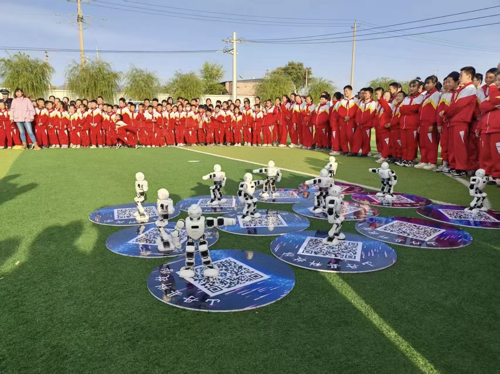 活动现场,科普辅导员为孩子们带来了趣味十足的“机器人表演”。音乐响起的瞬间,机器人仿佛被注入了活力——机器人抬起右臂,手掌灵活地做出“挥手”的动作,并配合着节奏,迈出精准的步伐,每一个抬手、转身的动作都与音乐节拍严丝合缝,甚至还会在转圈时轻轻“踮脚”,引得学生们纷纷跟着节奏拍手,伴随着孩子们的欢呼声此起彼伏。