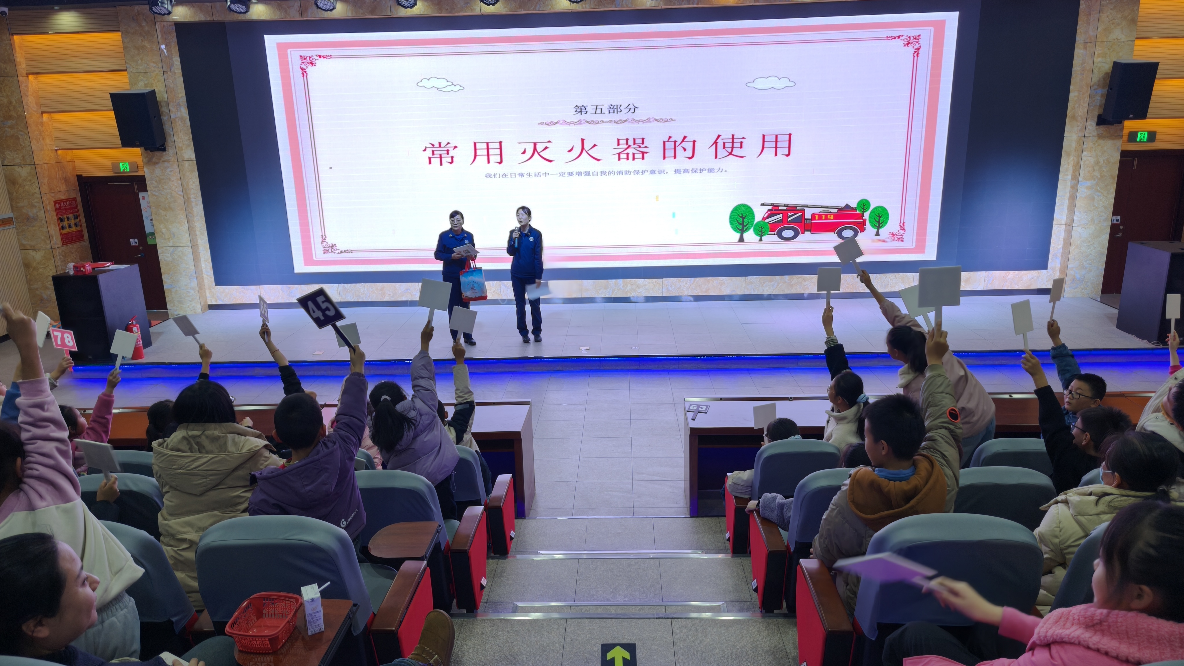 有奖问答环节紧张刺激,题目紧扣核心知识点,涵盖急救技能、防灾常识等内容,小朋友们踊跃举手、积极抢答,在趣味比拼中巩固所学,使安全科普知识入脑入心。