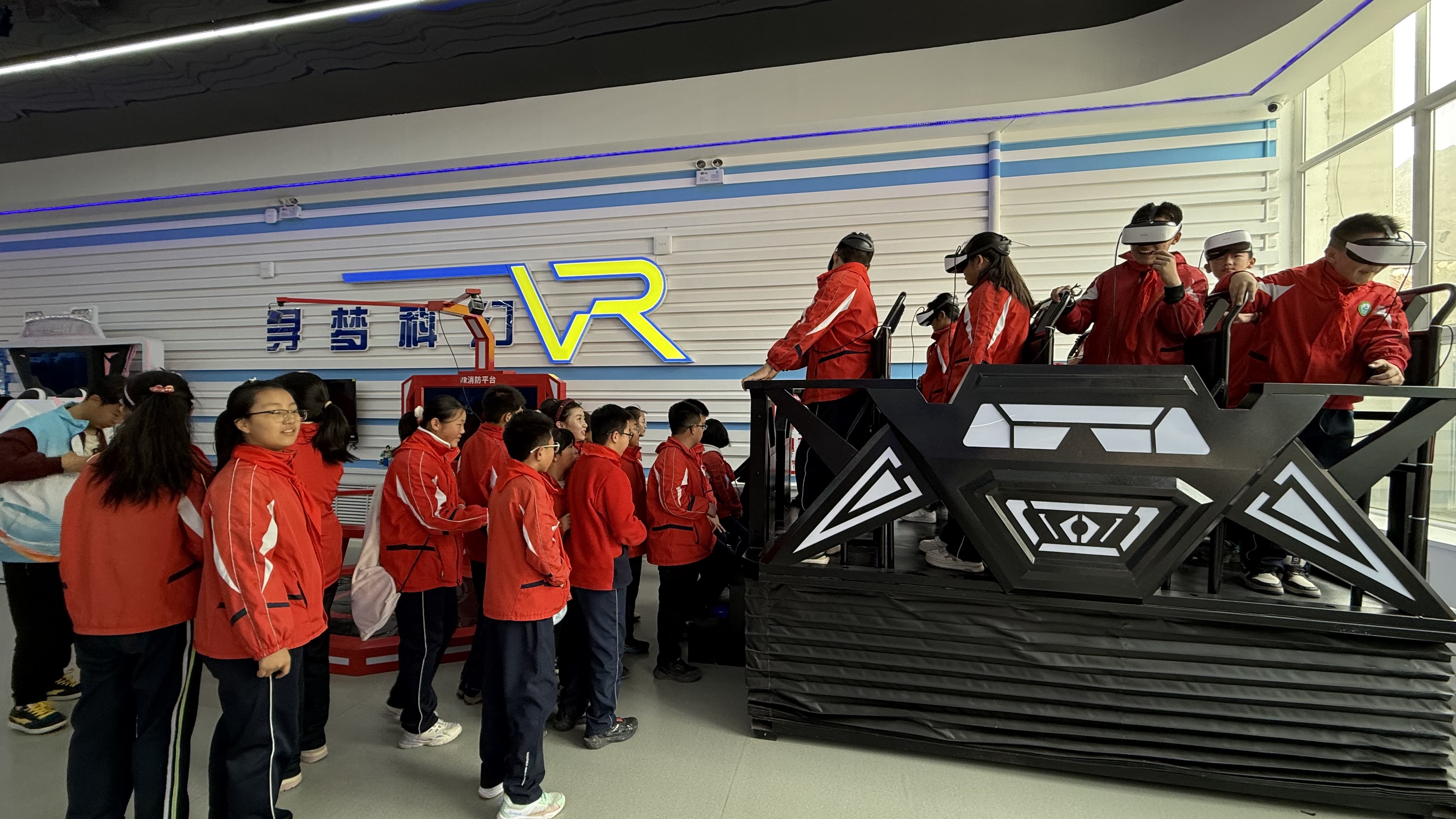 活动现场,孩子们身着统一的红色校服,在科普志愿者和带队老师的引导下,有序参观了科技馆各个展区。在基础科学互动展区,大家围在“怪坡”“听话的小球”等展品前,亲手操作、仔细观察,在直观的物理现象中感受力与运动的奥秘,脸上洋溢着好奇与兴奋;在VR体验区,孩子们戴上VR设备,坐上动感平台,沉浸式体验消防逃生、太空遨游等场景,在虚拟与现实的碰撞中学习应急避险知识,点燃航天探索热情;在生命科学与特色科普展区,大家通过互动装置了解人体奥秘、生态保护等知识,将科学原理与生活实际紧密相连。