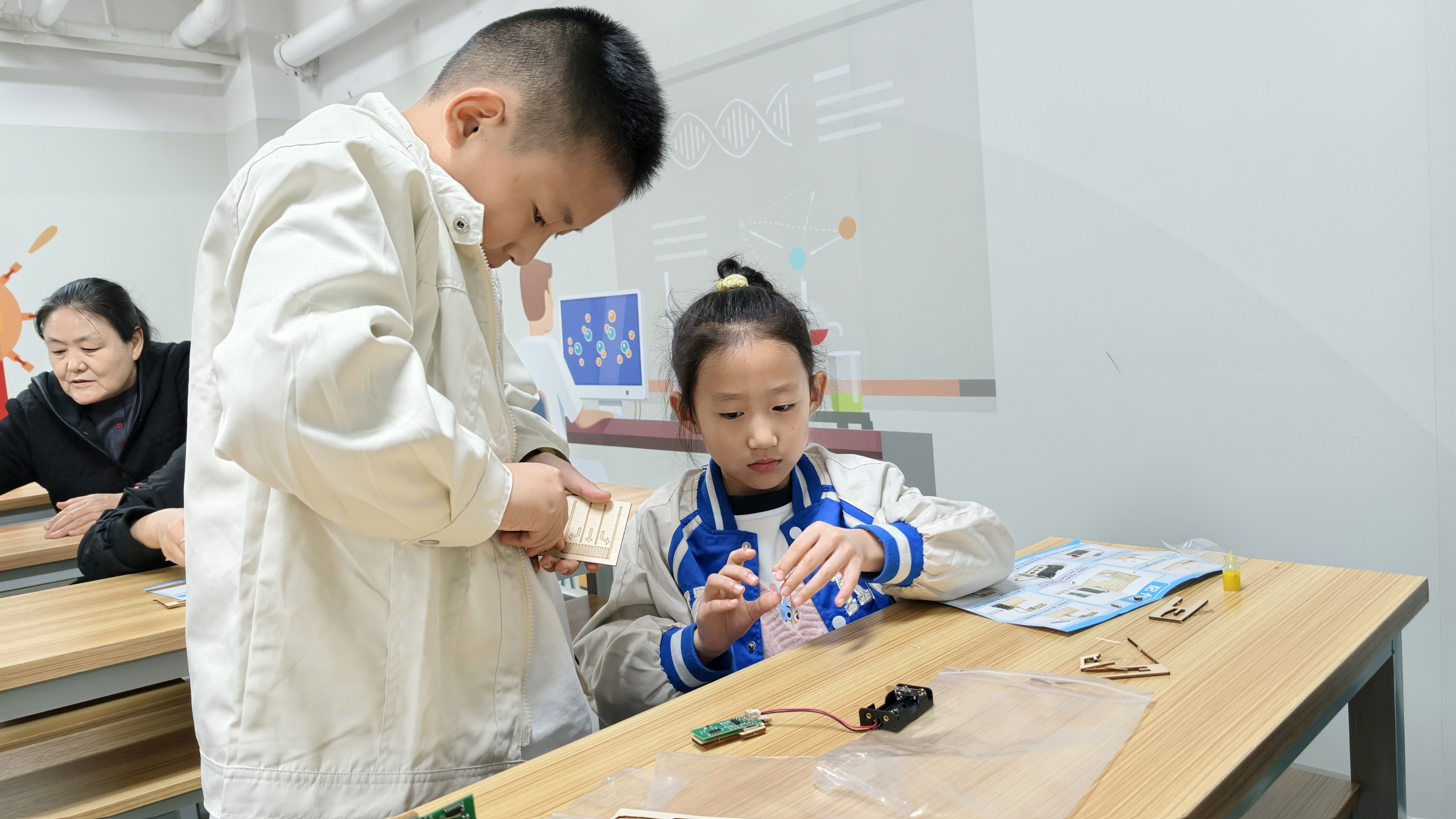 孩子们亲手组装探测仪,调试元件,随后在场馆指定区域开展“寻宝挑战”。随着探测仪发出清脆提示声,孩子们找到隐藏的金属小物件,欢声笑语中,电磁学的奥秘悄然融入他们的认知。