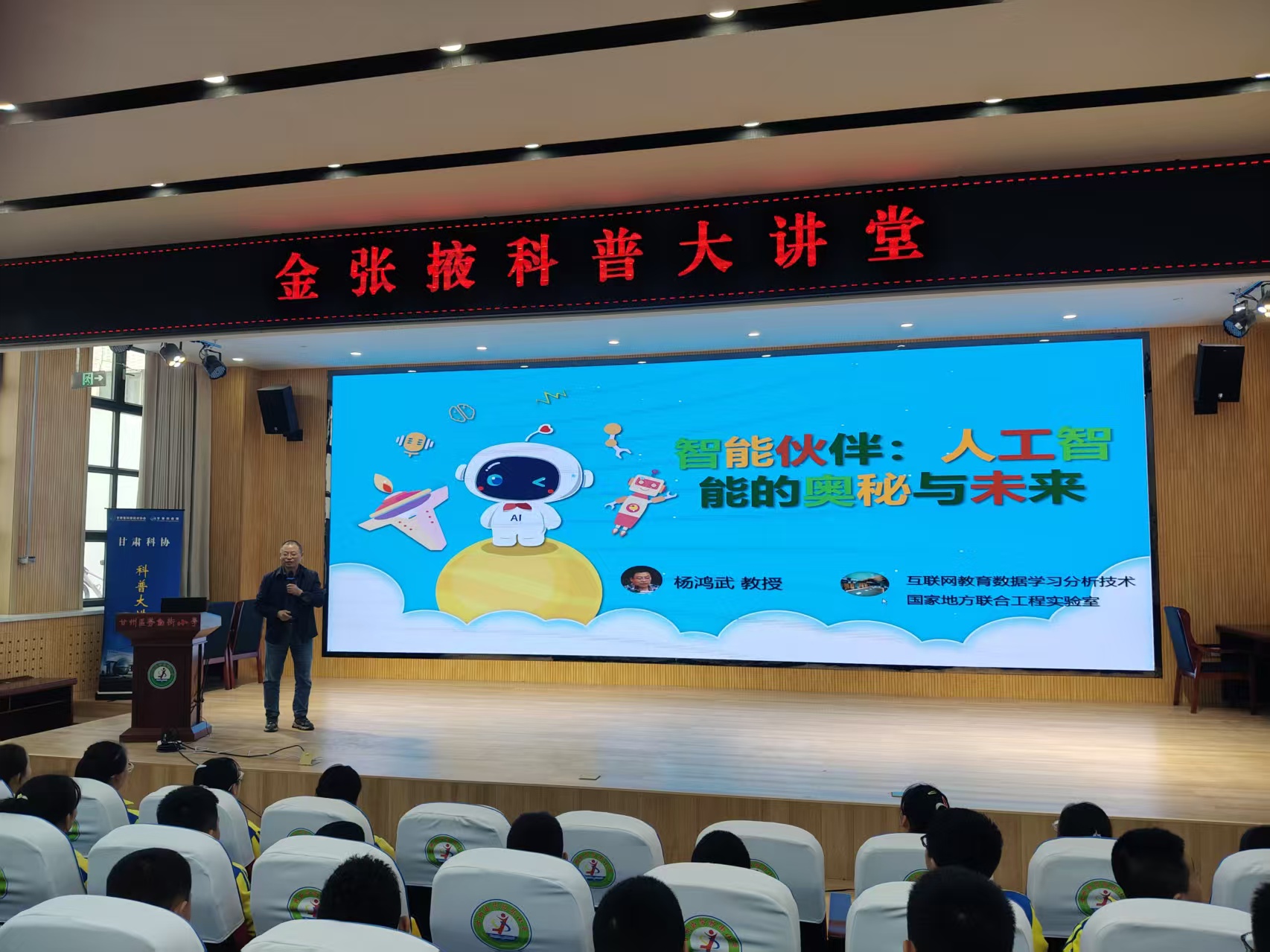 为普及人工智能科学知识,激发青少年科学探索热情与创新意识,近日,张掖市科协、甘州区科协联合开展科普大讲堂进校园活动,先后走进甘州区劳动街小学、青年东街小学,特邀西北师范大学教育技术学院博士生导师杨鸿武作人工智能专题科普讲座,为两所学校师生带来一场前沿科技科普盛宴。